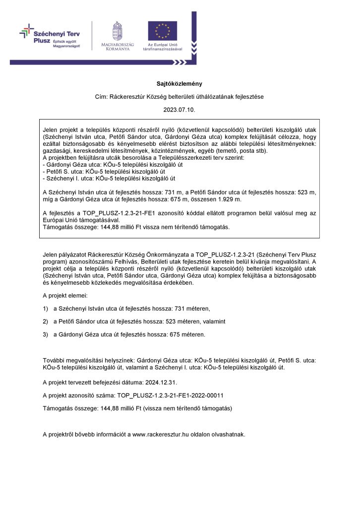 Top Plusz pályázatok Ráckeresztúron